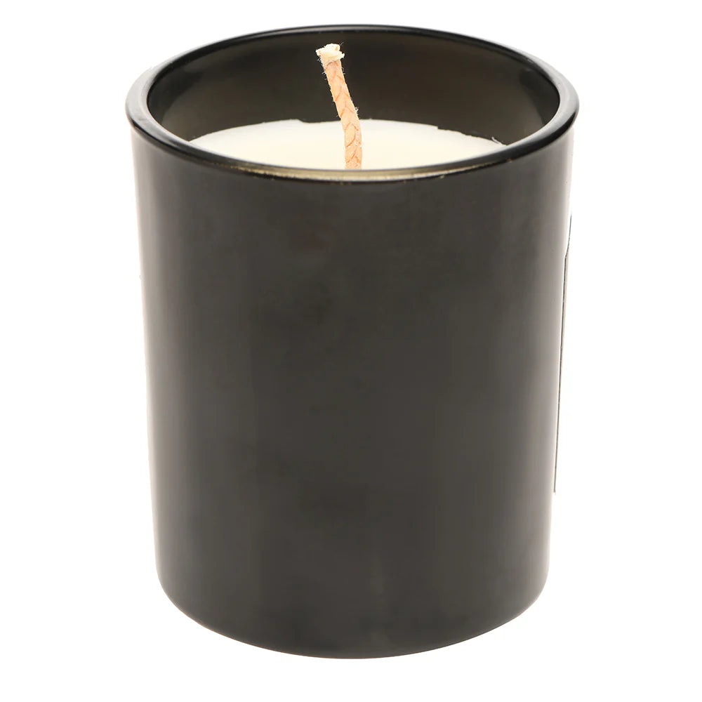 Coconut oil, essential oils, and soy wax in black ceramic that fits any decor, bedroom, or otherwise.