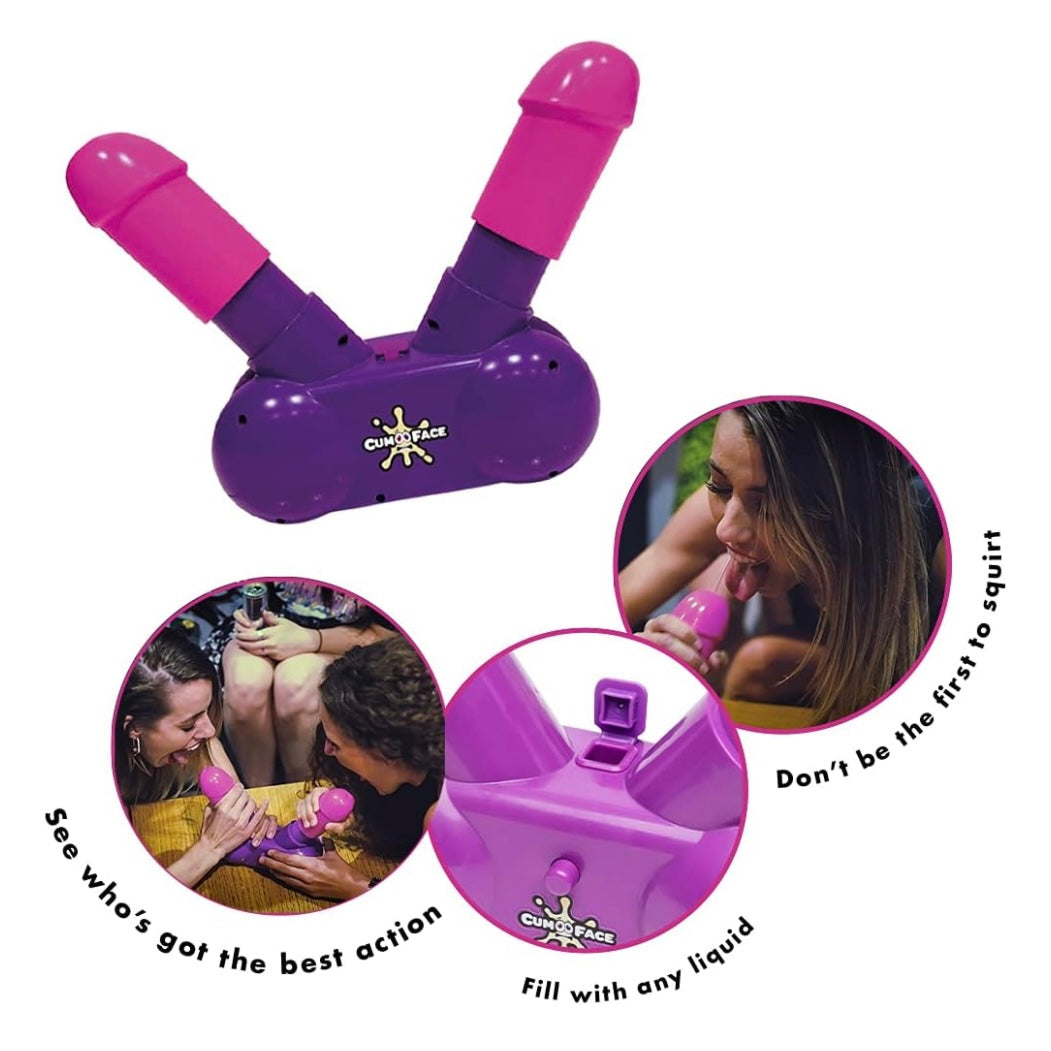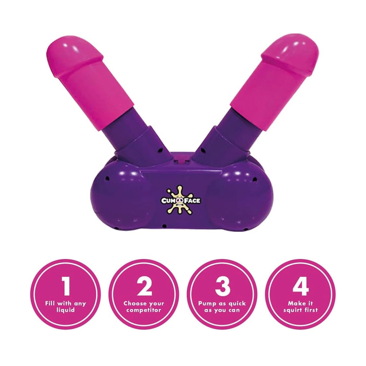 It's really starting to heat up outside, so we've been thinking about ways to cool off! If you have, too, or if you just like being sprayed in the face (with water!) and are the competitive type, the Cum Face Duel Pump Action Penis Game is for you - and a fun-loving group of friends.