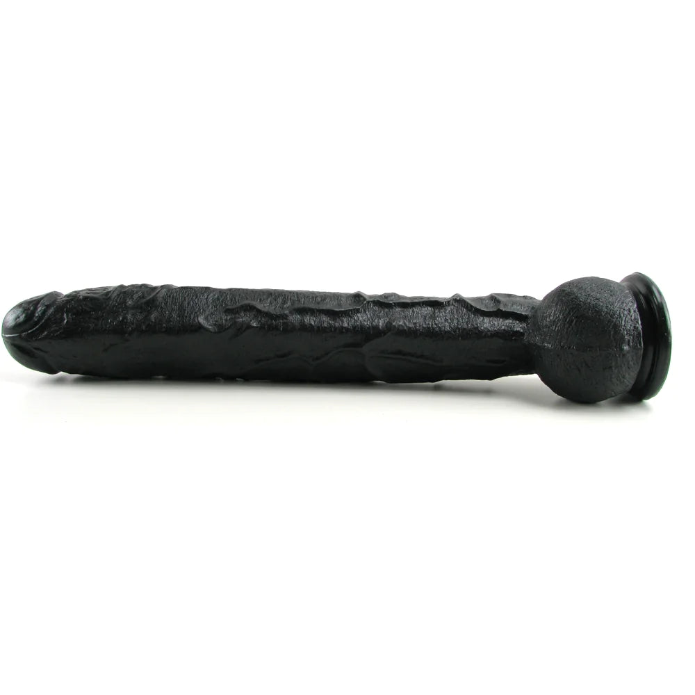 An enormous monstrosity of a dildo tailor-made to satisfy seekers of an incredibly intense stretch and fantastic fullness, Doc Johnson's Dick Rambone features a full 13 inches of thick, textured length, big rounded balls and a sturdy suction base inspiring hands-free fun.