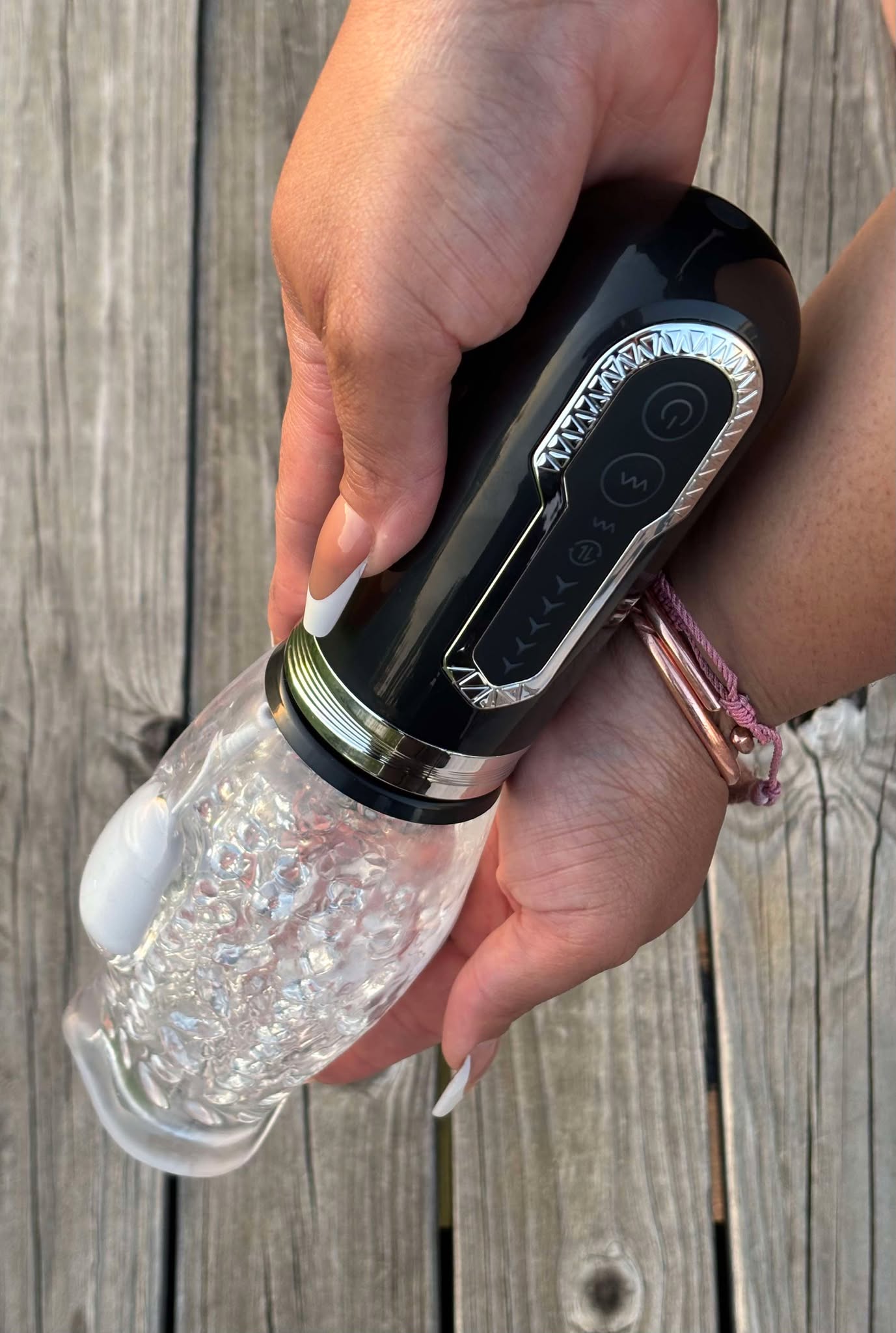 This stupendous stroker features seven tireless vibration modes shared between two bullets AND five synchronized, fully automated spinning and thrusting (one full inch) options. Play with vibration solo or combine it with all that up/down twisting - separate buttons control vibration and suction, so it's completely your (or their) call.