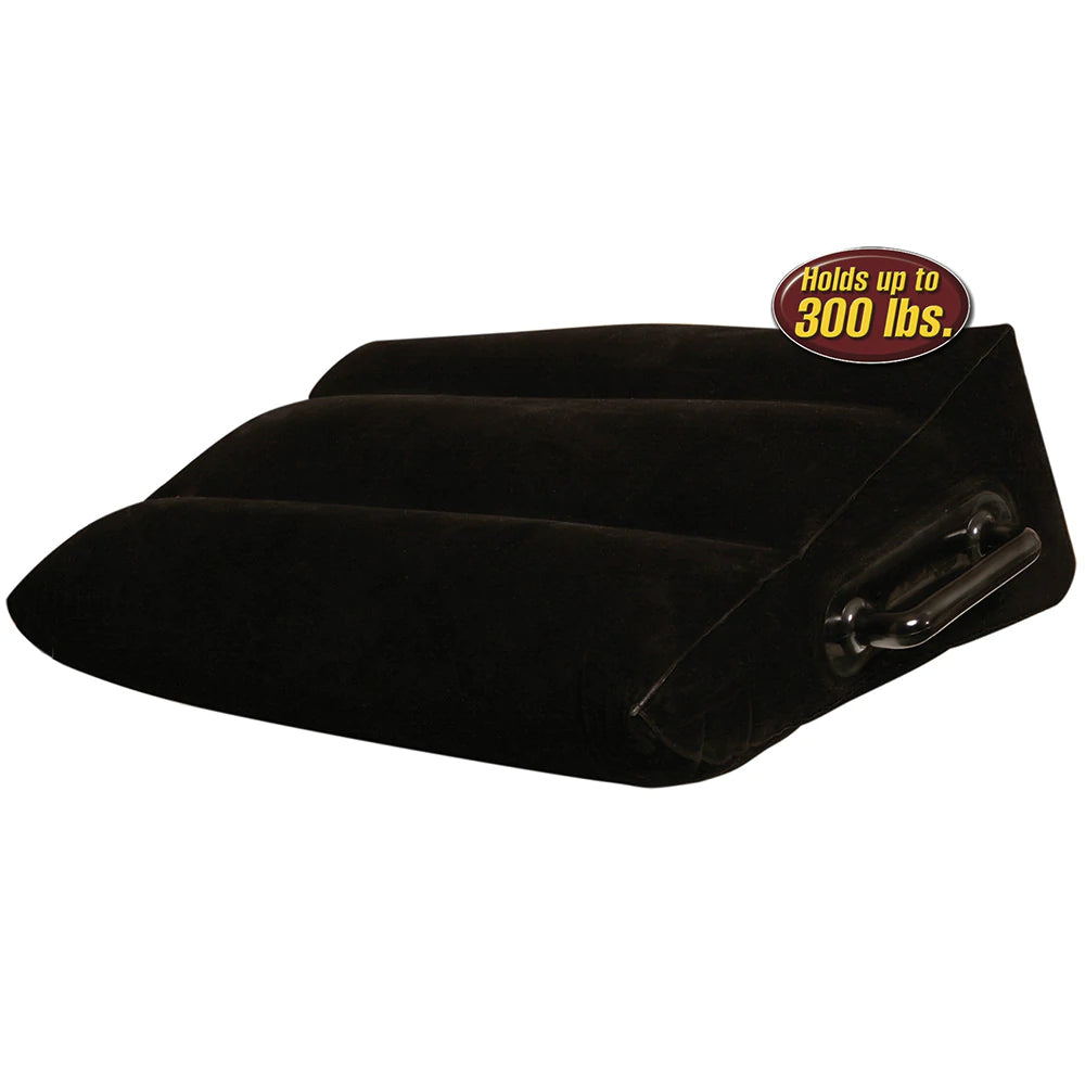 To get into the most pleasurable positions, the Inflatable Position Master is a perfect choice; it's a must-have for any adventurous couple. This big slanted pillow cushions the body, and provides support and leverage for the best sex. EZ Grip Luv handles on either side let you keep a strong hold so you can keep up the rhythm without tiring out, and a velvety flocked fabric keeps you from sliding around. The Position Master can be used with a variety of other Fetish Fantasy inflatables and also in combination with some of your favorite restraints and cuffs. It inflates quickly, and deflates equally fast for discreet storage. Holds up to 300 pounds.