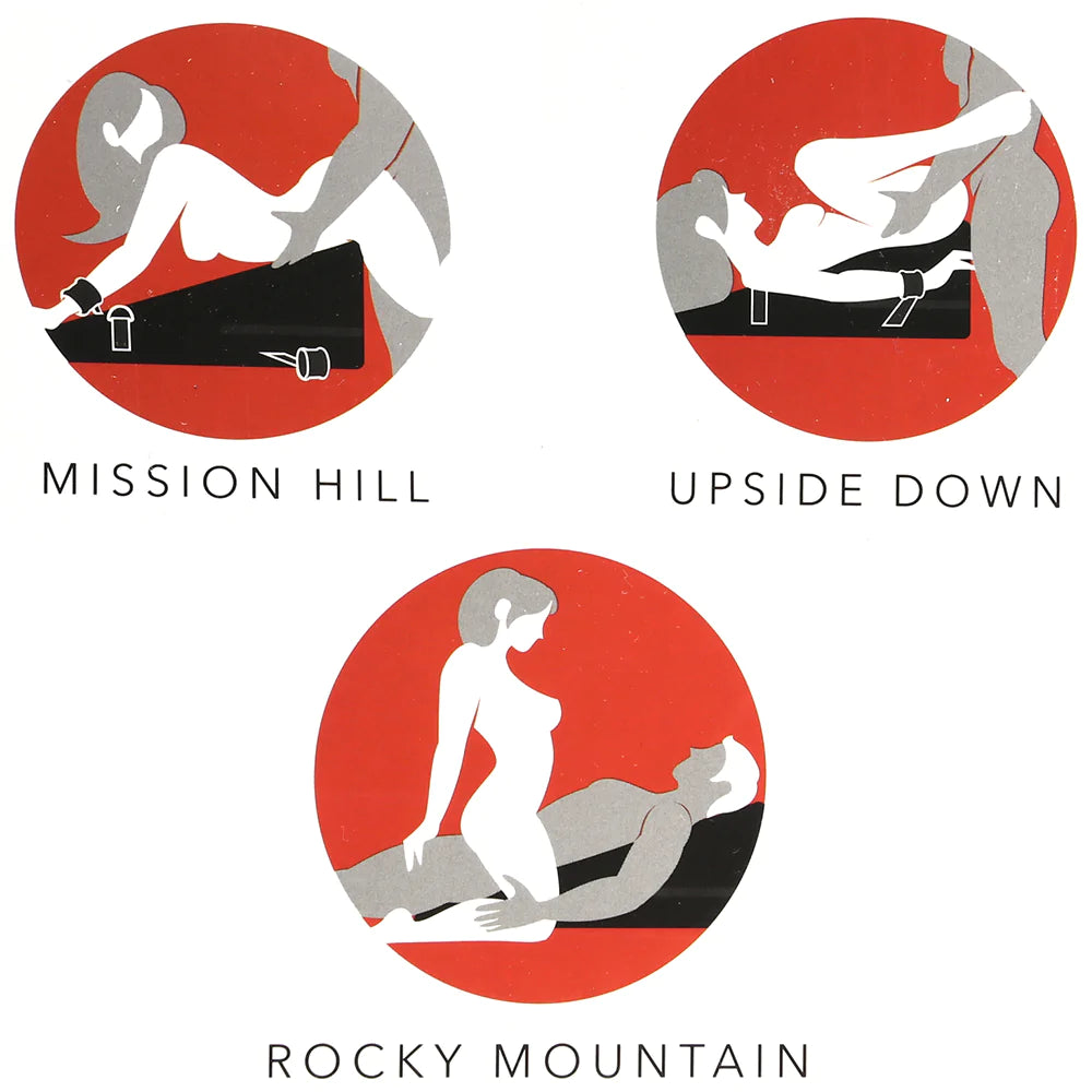 In sturdy, super-soft wrapped foam, the Try-Angle easily and very comfortably supports various parts of your or their body. It's perfect for propping up hips, supporting legs and necks, and much, much more. We know you won't have much trouble coming up with your own creative ways to enjoy the Try-Angle, especially since it comes with a set of attachable handcuffs, but there are some very inspirational diagrams printed on the packing, just in case.